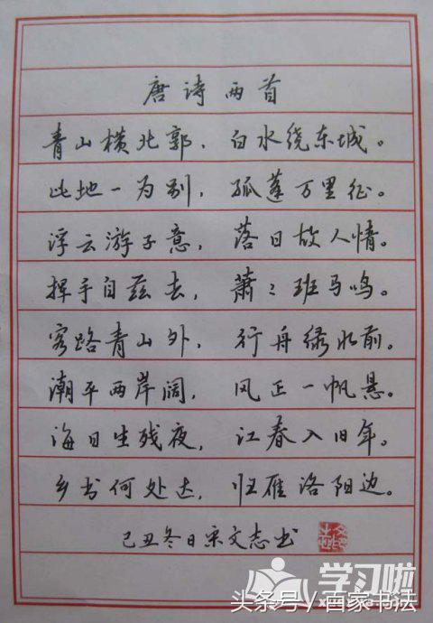 硬笔书法现如今在我国已经有非常高的艺术价值,它对我国书法的影响甚大,受到了越来越多人的欢迎。最新的硬笔书法作品可以提高人们对艺术的欣赏水平。下面是小编整理的最新的硬笔书法作品图片。