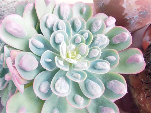 ③多肉可以净化空气、释放氧气 ,多肉与其他植物的呼吸作用相反,一般的植物是白天光合作用释放氧气,夜间释放二氧化碳。而多肉恰恰相反,白天闭合呼吸,夜间吸收二氧化碳释放人体所需的氧气。