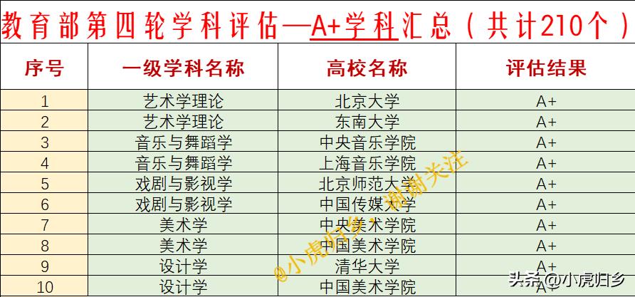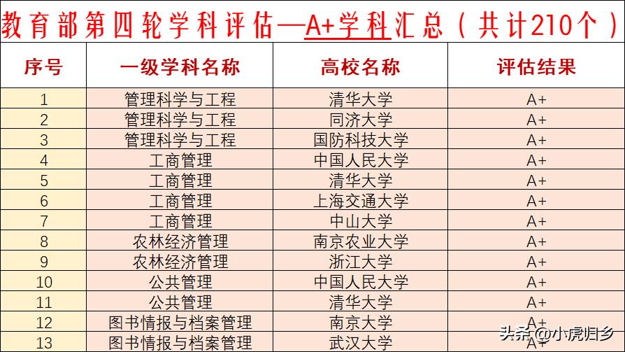 管理学和艺术学都是5个一级学科,管理学评出13个A+学科;艺术学评出10个A+学科。