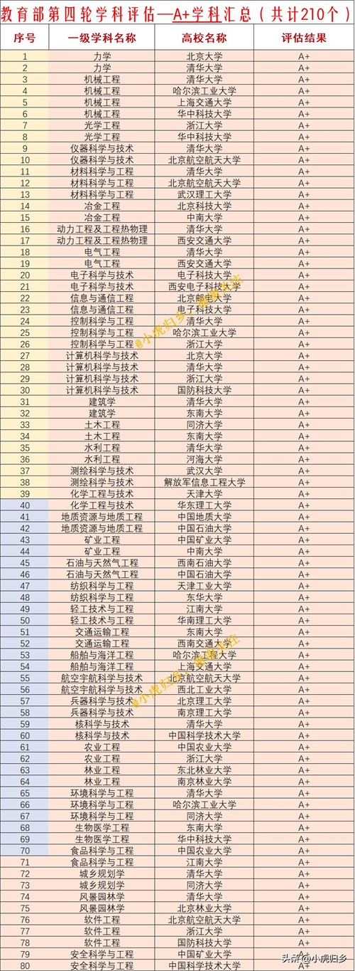 其中:工学共36个一级学科,评出80个A+学科,占比38%,学科门类中,A+总数位列第一。
