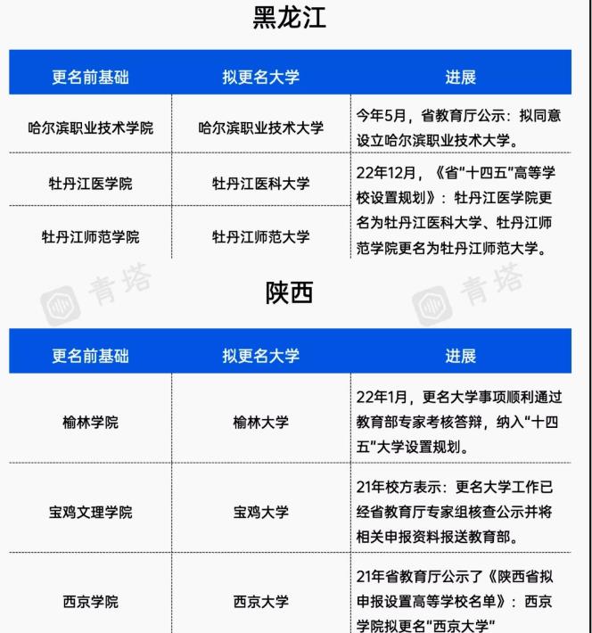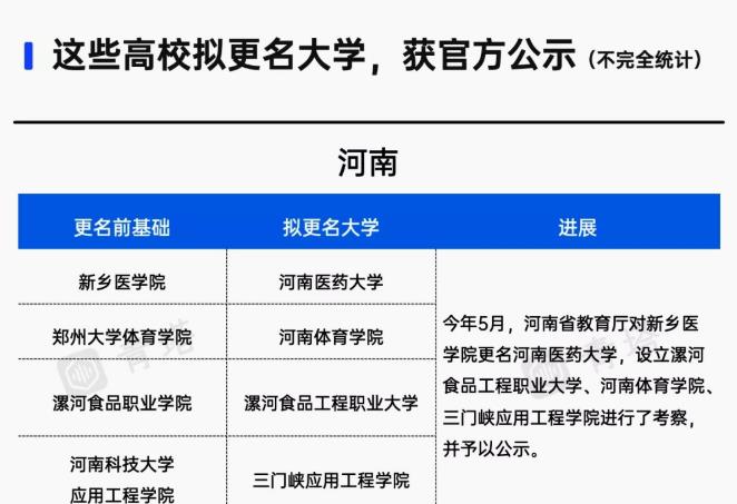 多地出现了很多,将要更名的院校。