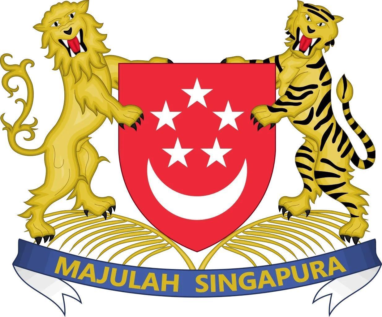 新加坡国徽由盾徽、狮子、老虎等图案组成。红色的盾面上镶有白色的新月和五角星,其寓意与国旗相同。红盾左侧是一头狮子,这是新加坡的象征,新加坡在马来语中是“狮子城”的意思;右侧是一只老虎,象征新加坡与马来西亚之间历史上的联系。红盾下方为金色的棕榈枝叶,底部的蓝色饰带上用马来文写着“前进吧,新加坡”