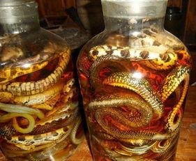 蛇酒在中国最是常见,可内服可外用。内服能增强体质,具有养生功效。而外敷可治疗常见筋骨扭伤、骨关节等疾病。