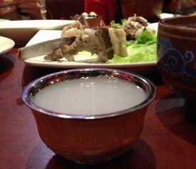以鲜马奶、牛奶为原料,经发酵蒸馏而成,酒体无色,清亮透明,纯正清雅,醇甜柔和,回味悠长,乳香与酒香和谐并存。酒体中30%为乙醇(酒精)、另70%为牛奶的精华液。乳酒在中亚大草原地区极其受欢迎。