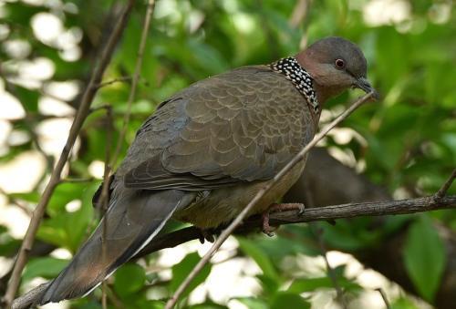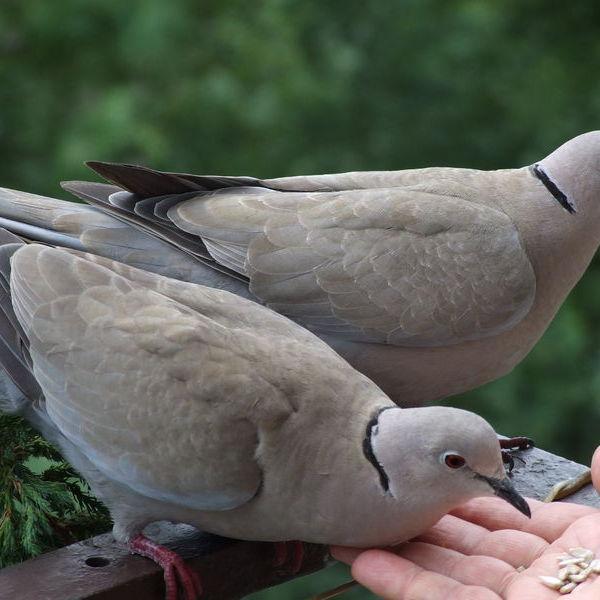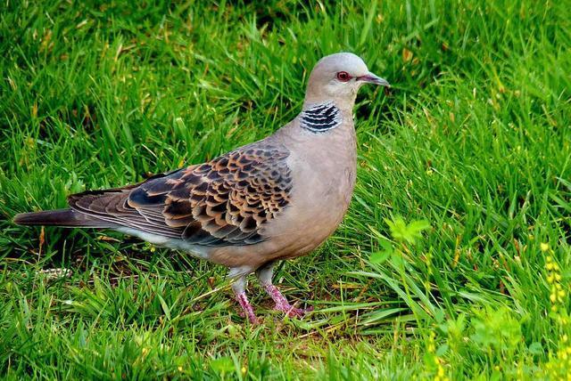 斑鸠是咱们日常中经常见到的鸟儿之一,属于三有鸟类。有的地方也叫野鸽子,在野外经常可以听到它们的声音和看到它们的身影,咱们经常见到的斑鸠有虎纹斑鸠,珠颈斑鸠,灰金斑鸠和火轱辘斑鸠,虎纹斑鸠羽毛非常的好看,有像虎皮样的火纹状,个头比较大,我们这里俗称牛屎泡斑鸠形容它的个头大,珠颈斑鸠脖子一周有一圈白色珠点状图案,就像人类带的珍珠项链而得名,它的叫声非常的宏亮,有的人把珠颈训练成鸟媒,让它做诱捕它们同类的帮凶,灰金斑鸠和珠颈斑鸠大小差不多,就是没有脖子一圈的白点,火轱辘斑鸠比这几种斑鸠小的多,别看个体小非常的机灵,一有动静就马上起飞,它们一般春天开始繁殖,一年3-4窝,一窝两枚蛋,由于自然界的不确定因素加上天敌伤害它们不可能全部长大,人工喂养这类斑鸠必须从雏鸟养起,可以喂的像鸽子一样家飞,一般一窝是一对一公一母,这样养大了后六个月就成熟了,可以交配繁殖,可以笼养也可以仿野生散养。由于人类的过度砍伐它们的栖息地越来越少,城市到处都是钢筋水泥的高楼大厦,供它们栖息做窝的地方太少了,有时候斑鸠也会选择在高楼的空调外机处,窗台边的花盆中做窝,这都是人类把它们的家给占领的结果。
