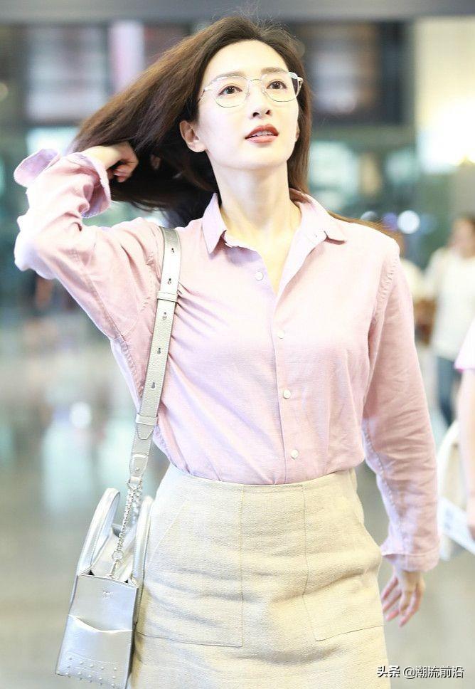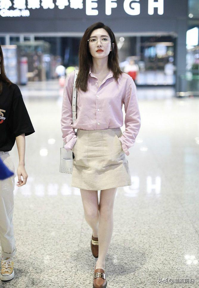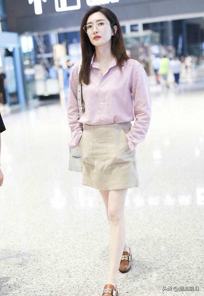 女神的这一组机场穿搭就更吸睛了。上身是藕粉色的基础款衬衫,下边是米色的A字裙,颜色的选择上很清新,原本就白到反光的肤色,也衬得更加瓷白。