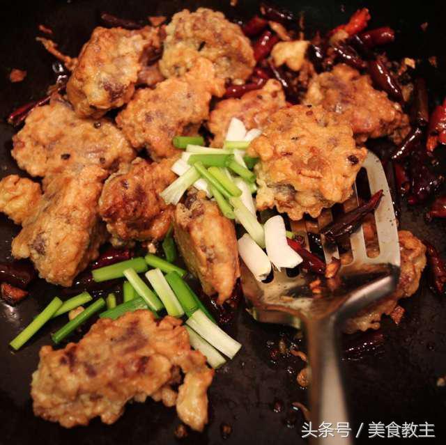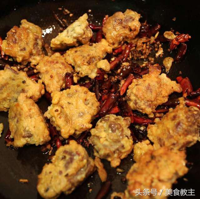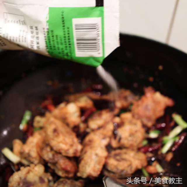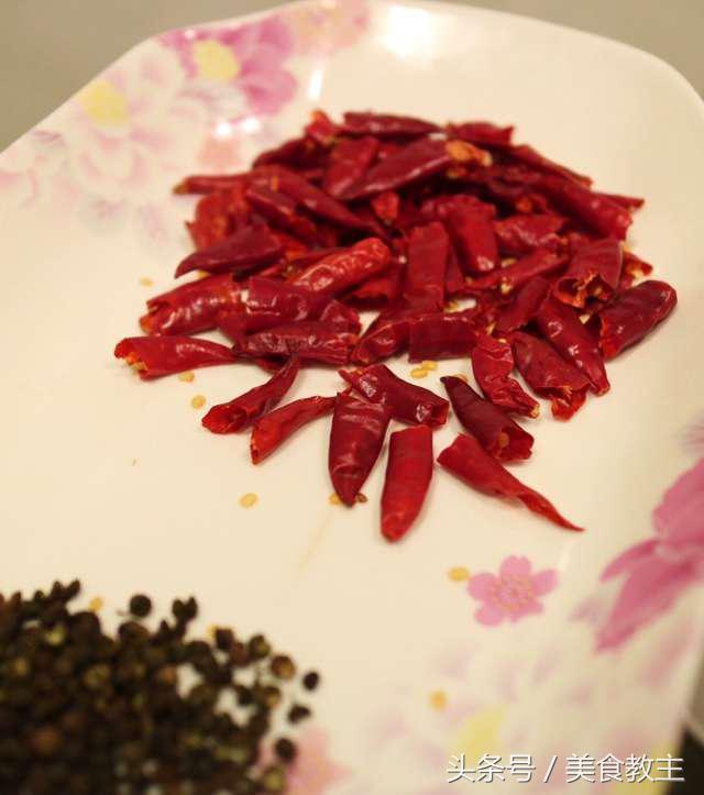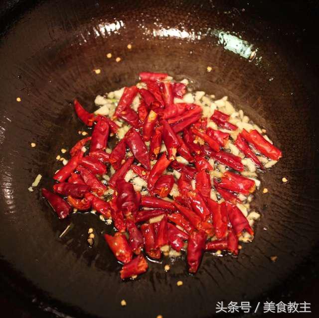 接着加入干辣椒,一定要小火,要不然就糊了。