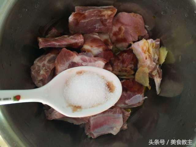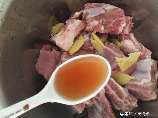 加入排骨里面,然后加两勺料酒