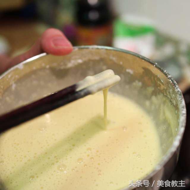 拌成糊状,略为浓稠才可以挂上糊。