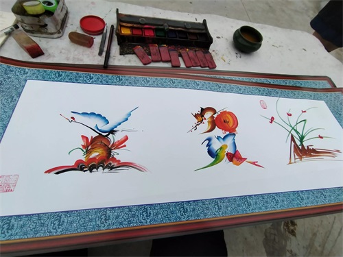 不过每个人的创作习惯不一样,在创作时,多尝试,多总结,总会有自己的一套方法。包括色彩的搭配,花鸟鱼虫的组合等。用笔方法和用色口诀