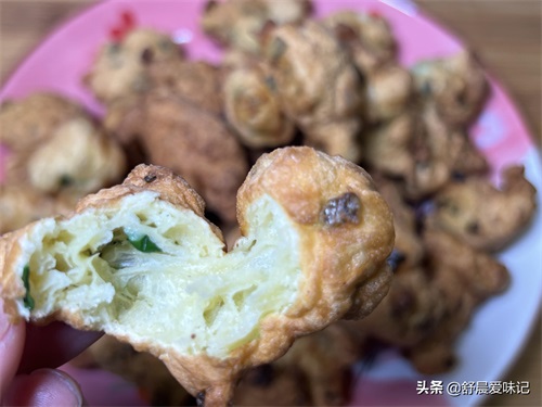 10. 全部炸好控油捞出到盘子中,掰开一个,蓬松柔软,美味即享