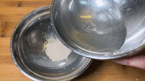 5. 在碗中加入酵母粉,用温水化开倒入大碗中