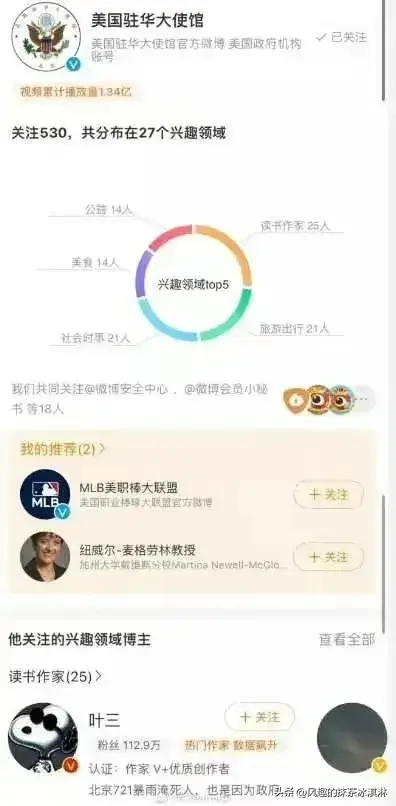 甚至还发言称冰冷的祖国,虚伪的友谊等,还关注了美国驻华大使馆,不知道是不是因为这个才给了她如此大的勇气。