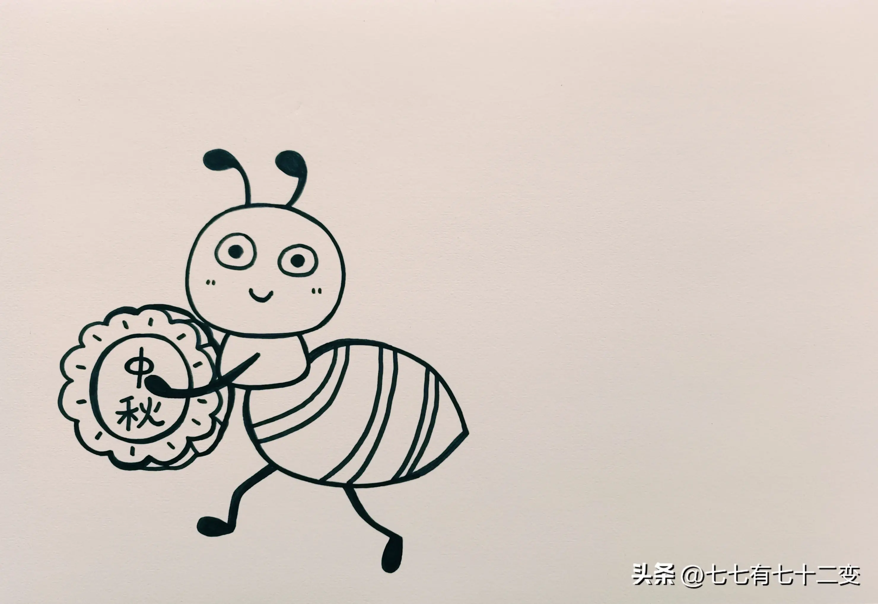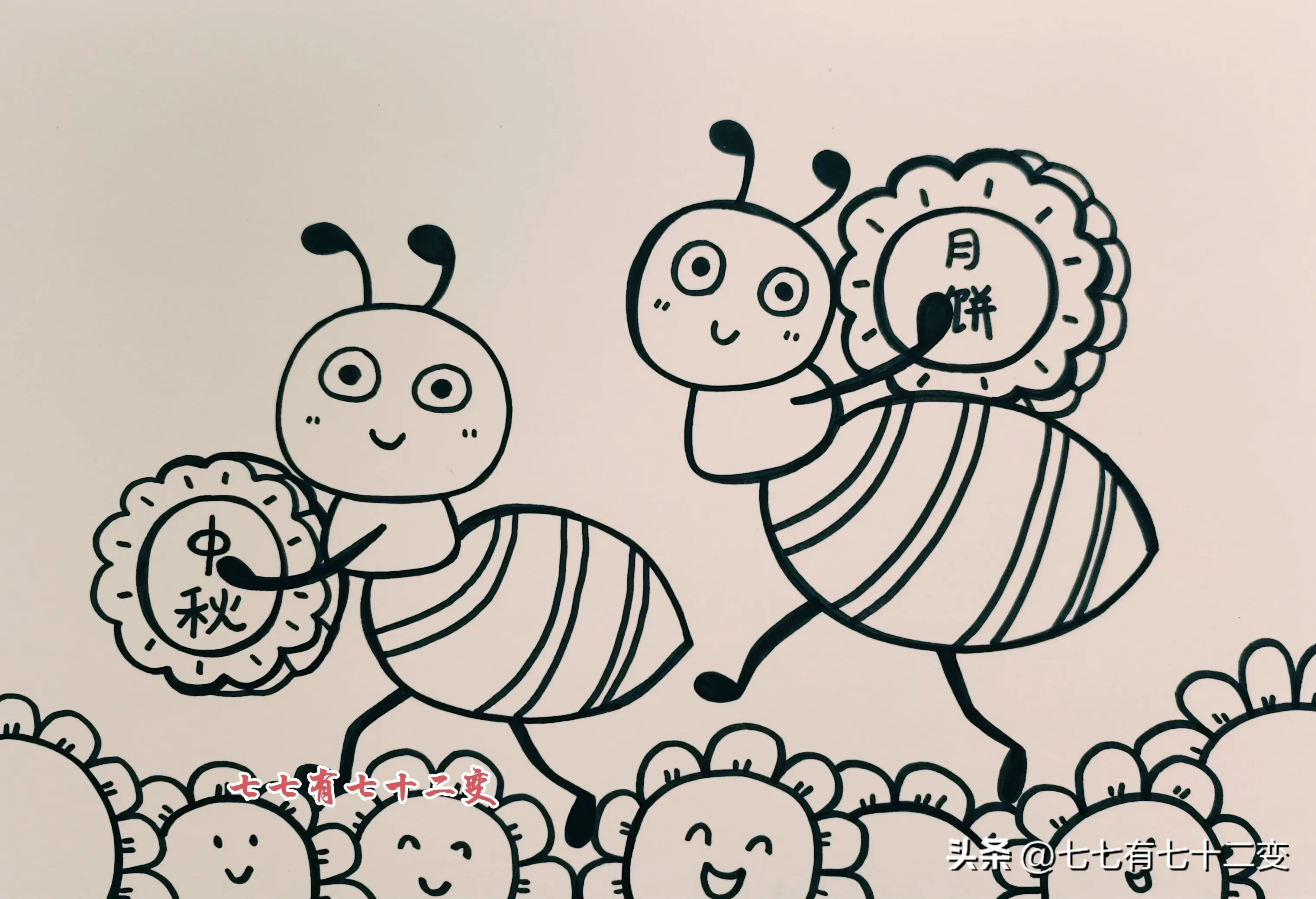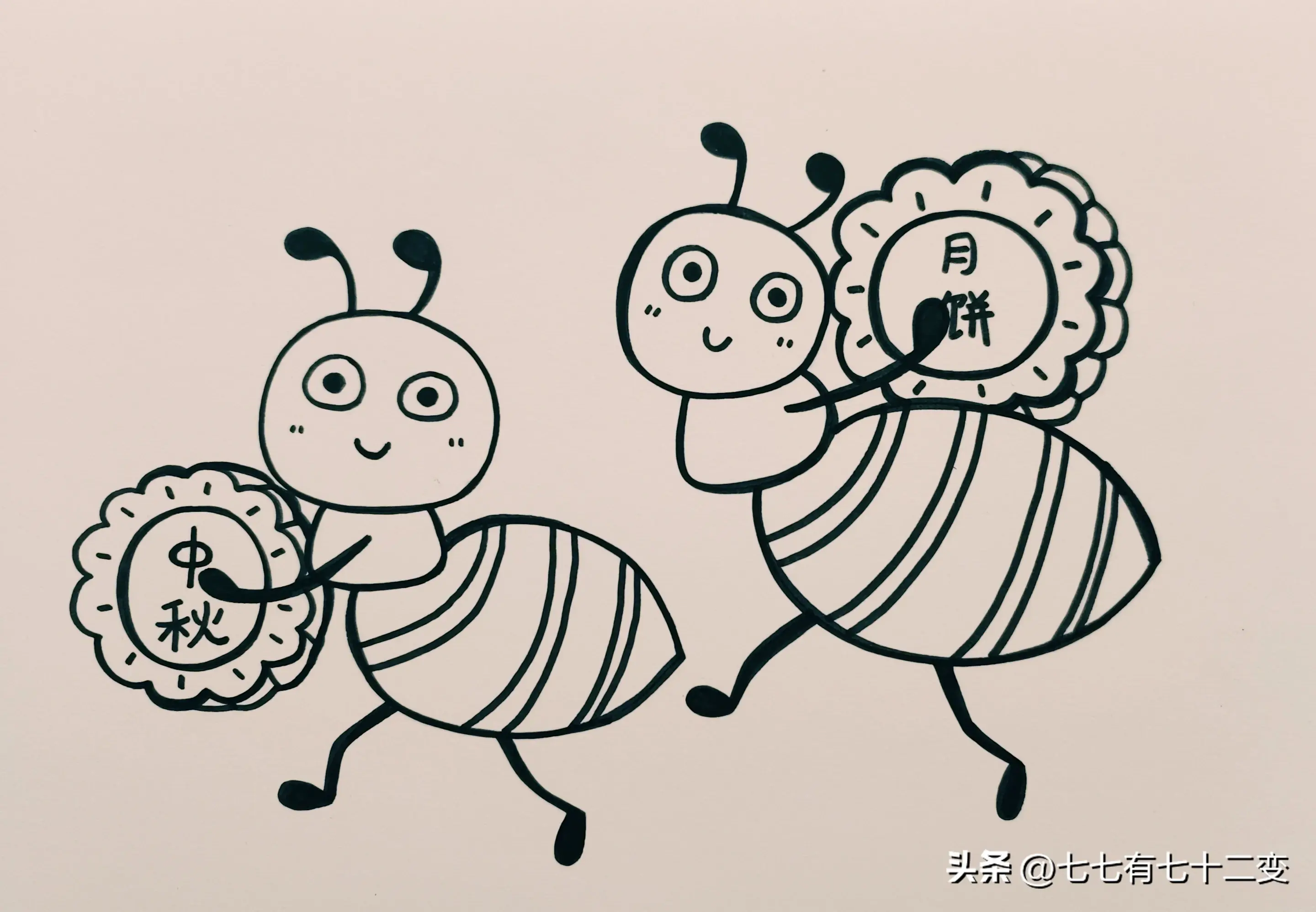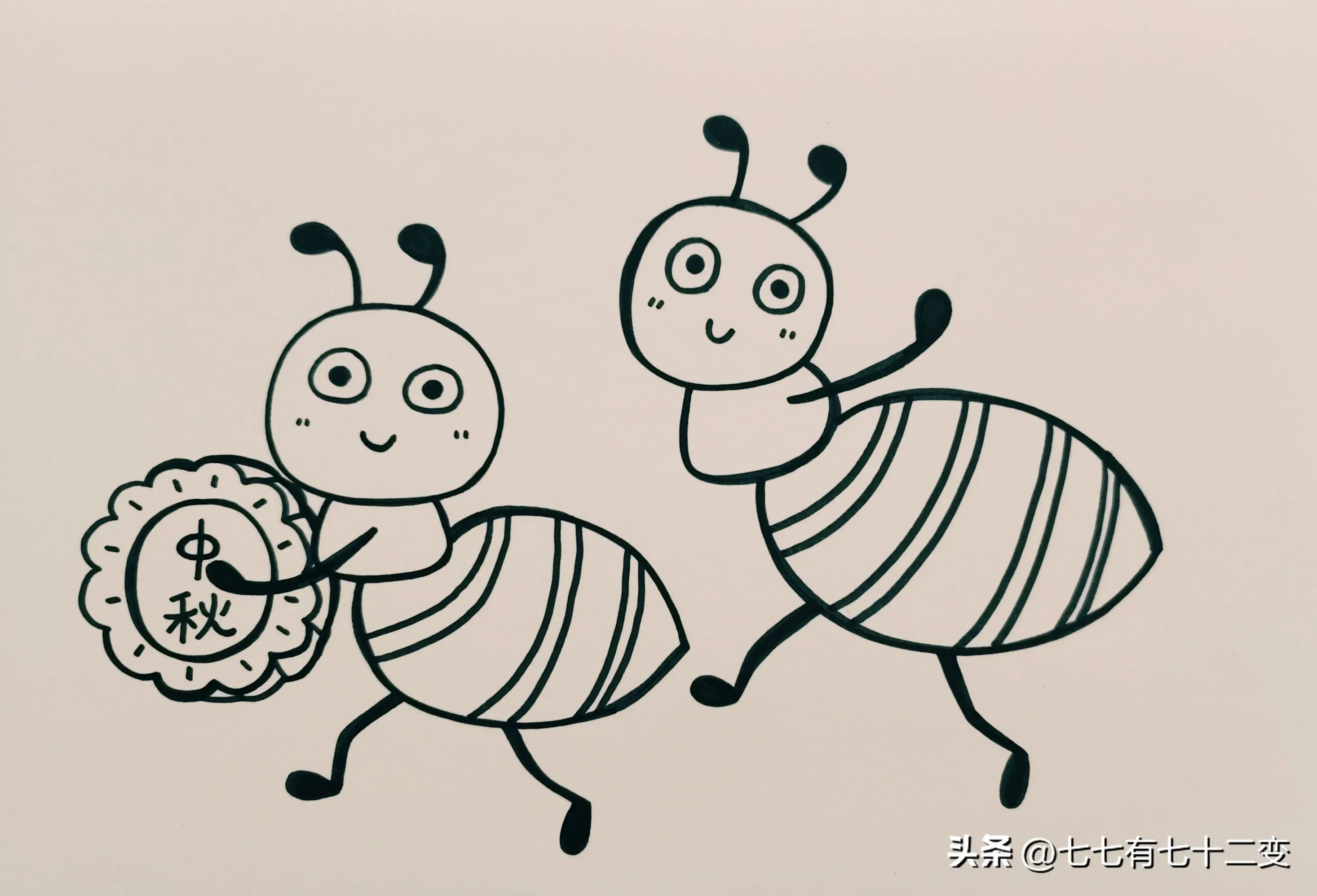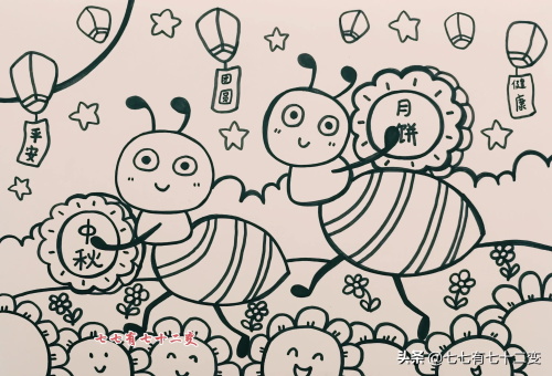中秋节主题画-蚂蚁喜欢吃月饼|中秋节快到了,来跟着绘画步骤画一幅中秋节主题画吧,两只小蚂蚁搬月饼也太可爱了吧!