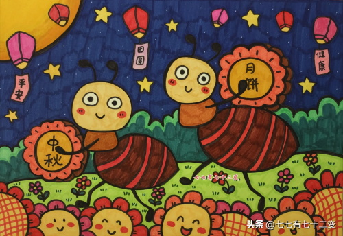 中秋节主题画-蚂蚁喜欢吃月饼|来跟着绘画步骤画中秋节主题画