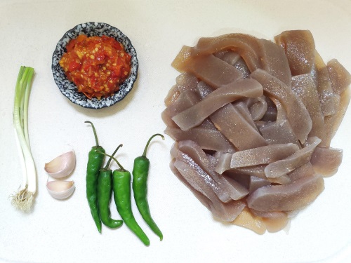 准备:魔芋豆腐切片,准备好其他食材