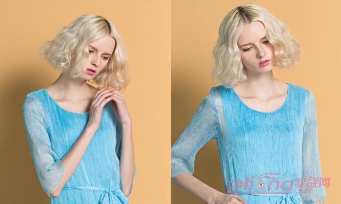 这款纹理烫发型最大的特点就是上直下卷,头顶部的秀发直顺服帖,下半部分的秀发则卷翘丰盈,亚麻浅金的发色则非常出挑,让人印象深刻,十分适合拥有精致小脸的女生。