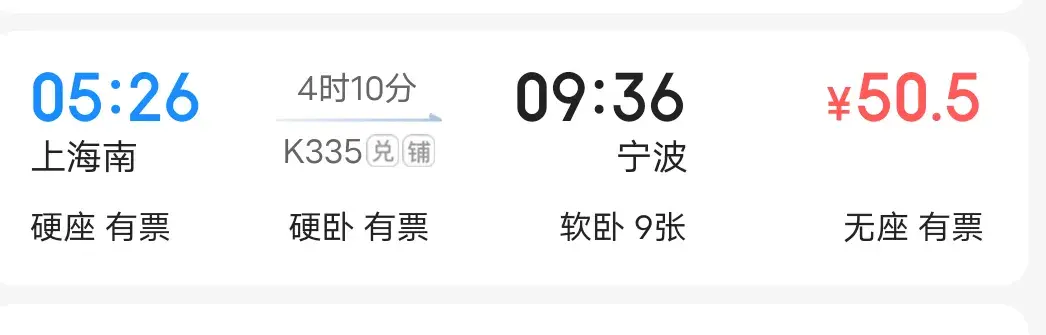 这个价格还低于上海到宁波的绿皮车。