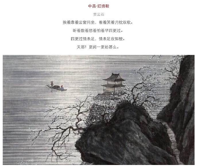 枯藤老树昏鸦,小桥流水人家。古道西风瘦马。夕阳西下,断肠人在天涯。