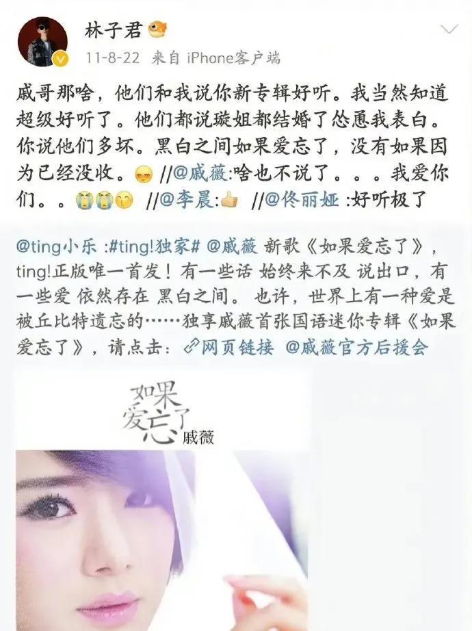 当然,林子君的所作所为,感动到了戚薇,戚薇也不是没有回应,据说那首《如果爱忘了》就是花高价买给前女友林子君的。[舔屏]