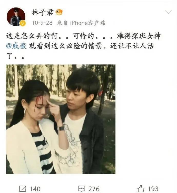 戚薇和林子君于2019年相识,林子君曾多次探班拍戏的戚薇。