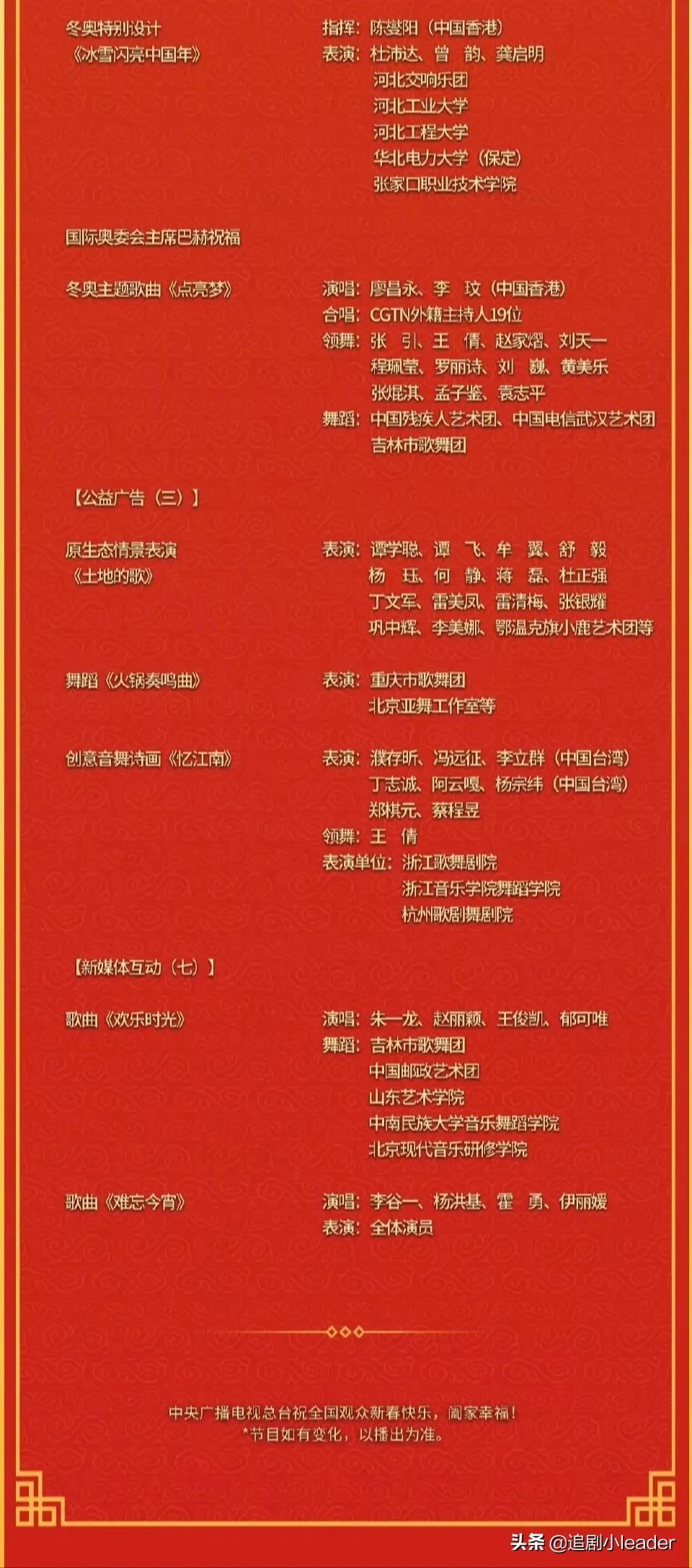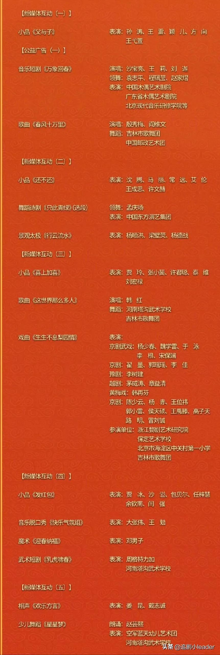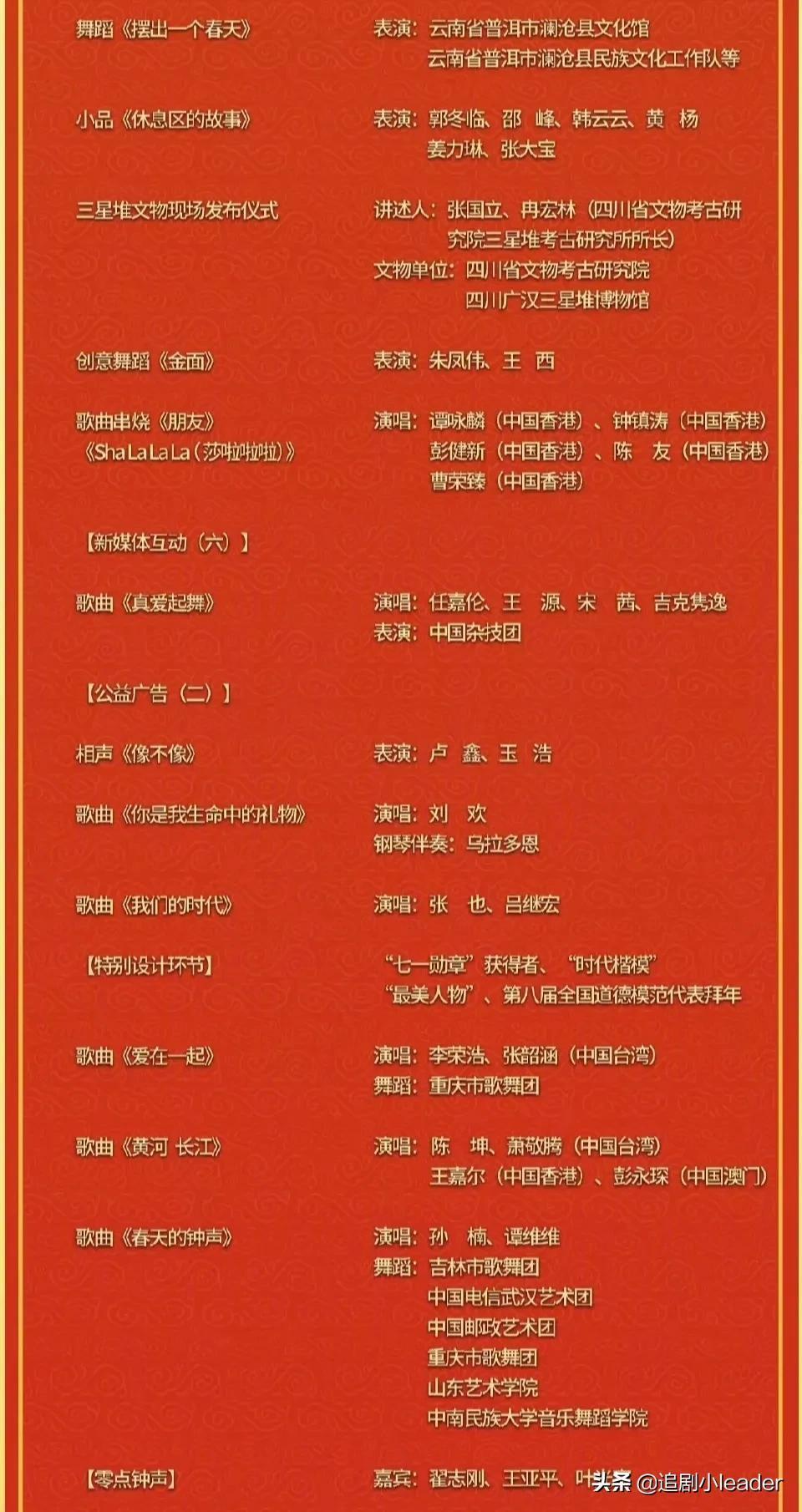 新的一年即将到来,今晚又是万众睹目的春节晚会了,咱们今天就来看看有春晚有啥节目,有没有你期待的节目或艺人。