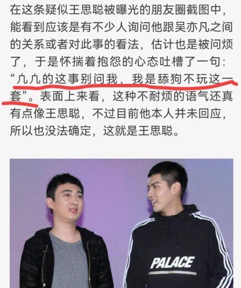 近日,吴亦凡事件可谓是轰动娱乐圈,有人爆料之前的好友王思聪的朋友圈,让人哭笑不得。网友:舔狗这一套还是王思聪玩的溜!