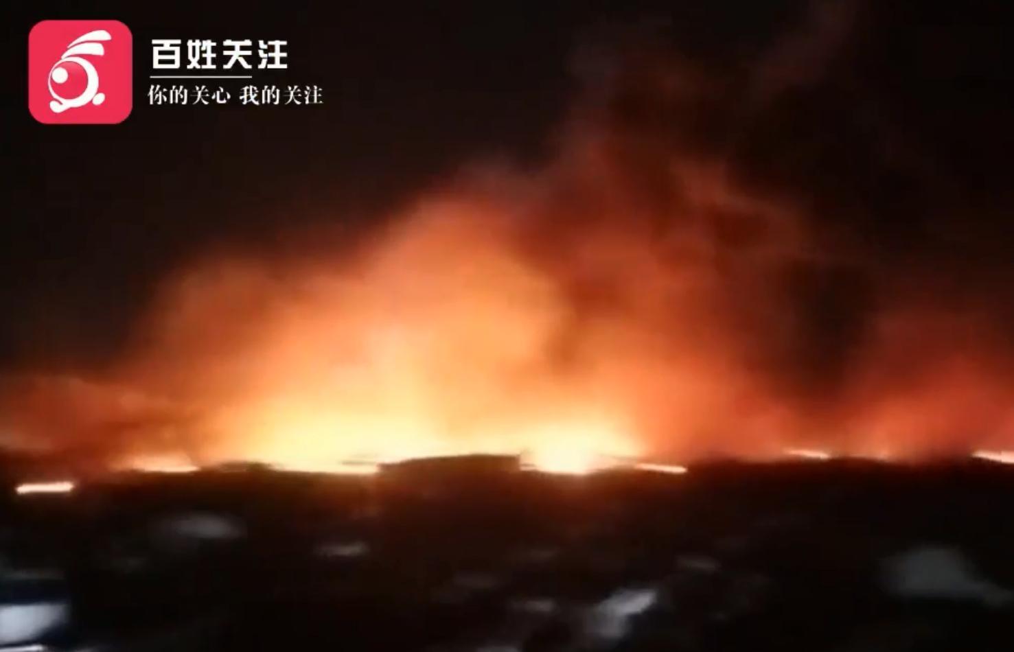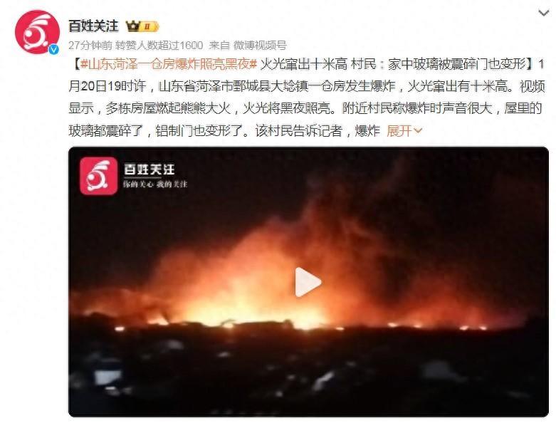 山东菏泽一仓房爆炸照亮黑夜 火光窜出有十米高