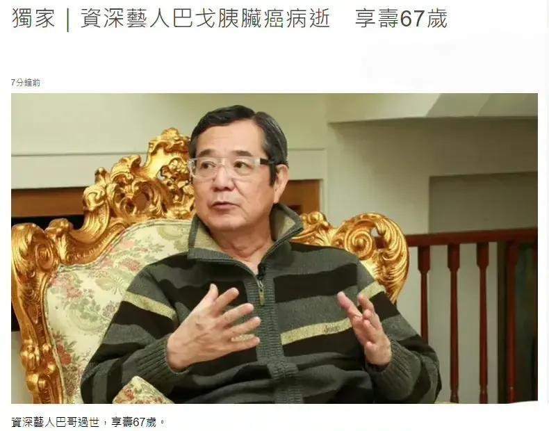 资深艺人巴戈icon病逝,享年67岁。他曾在《回家的诱惑》里出演林品如icon父亲林守成一角,也曾参演过《终极一班》等经典作品