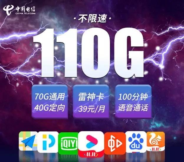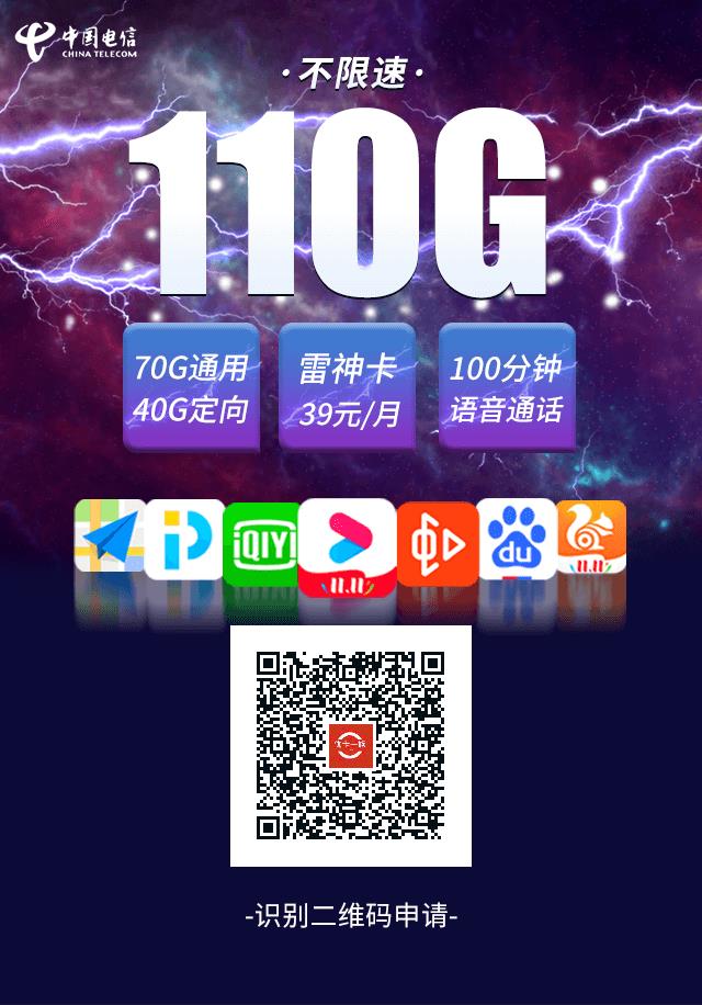 电信雷神卡申请入口 月租39元享70G通用流量+40G定向+100分钟通话