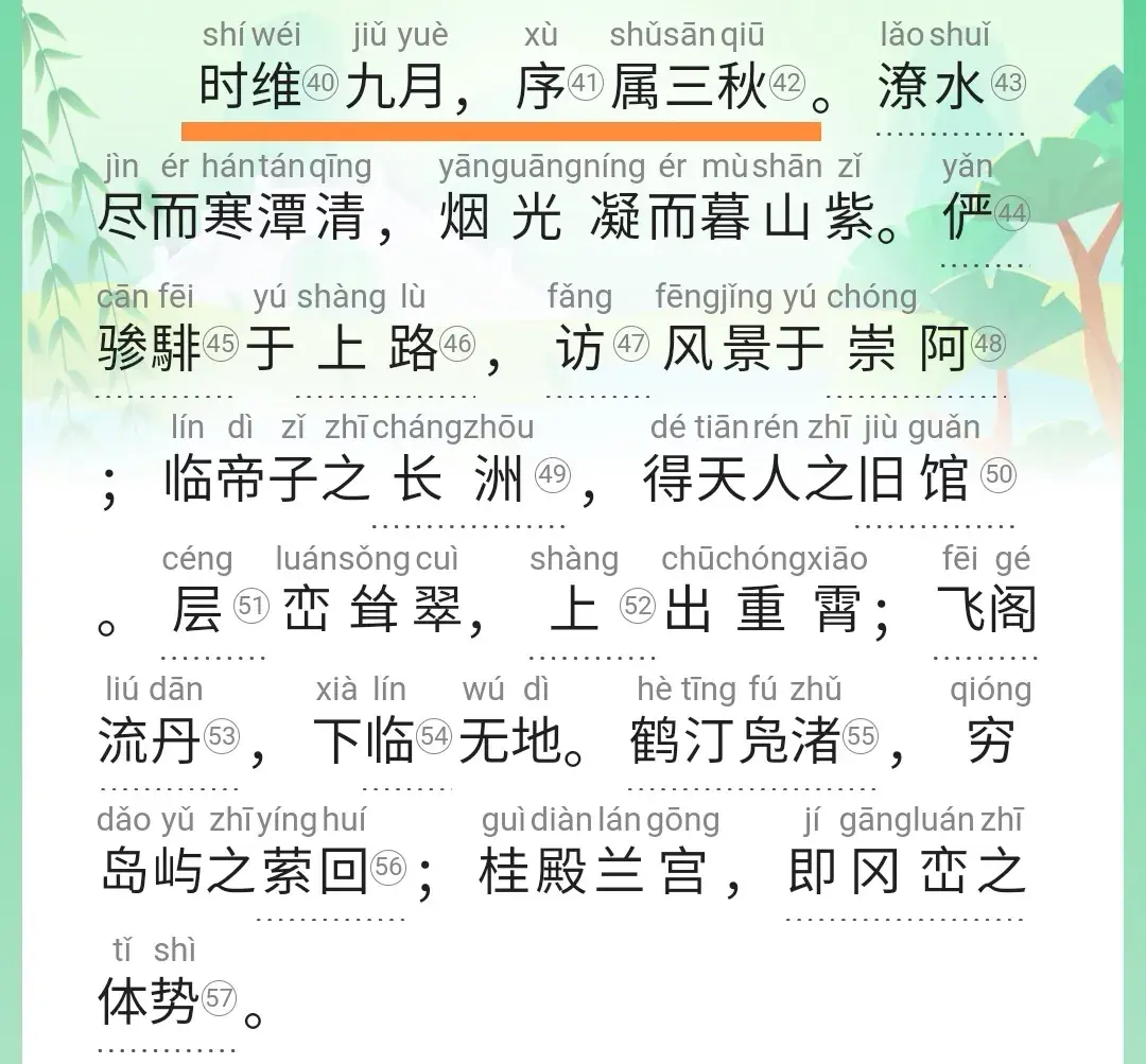 所以第一句,“时维九月,序属三秋”的意思就是说:现在的时间是九月。