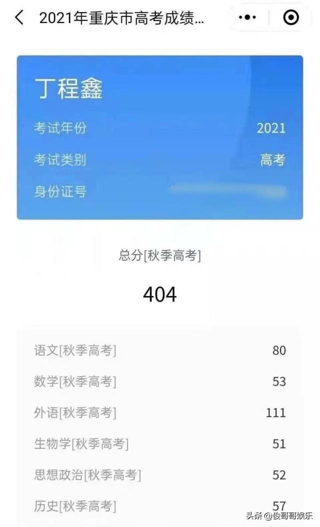 丁程鑫考了404分,语文80没及格,数学53,英语比较突出,考了111,综合分160,是已经合格达标了的。