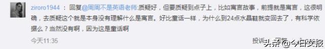 有网友认为:质疑好,但要质疑到点子上,比如寓言故事,前提就是寓言,这很明确,去质疑这个就是本身没有理解什么是寓言。好比童话一样,为什么到24点水晶鞋就变回去了,有科学依据么?当然没有啊,因为这是童话啊!