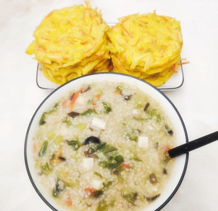 做法:嫩豆腐切成一小块,海带泡洗干净切段,等小米熬得差不多的时候放进去,继续熬制软烂,出锅前抖一点盐即可。