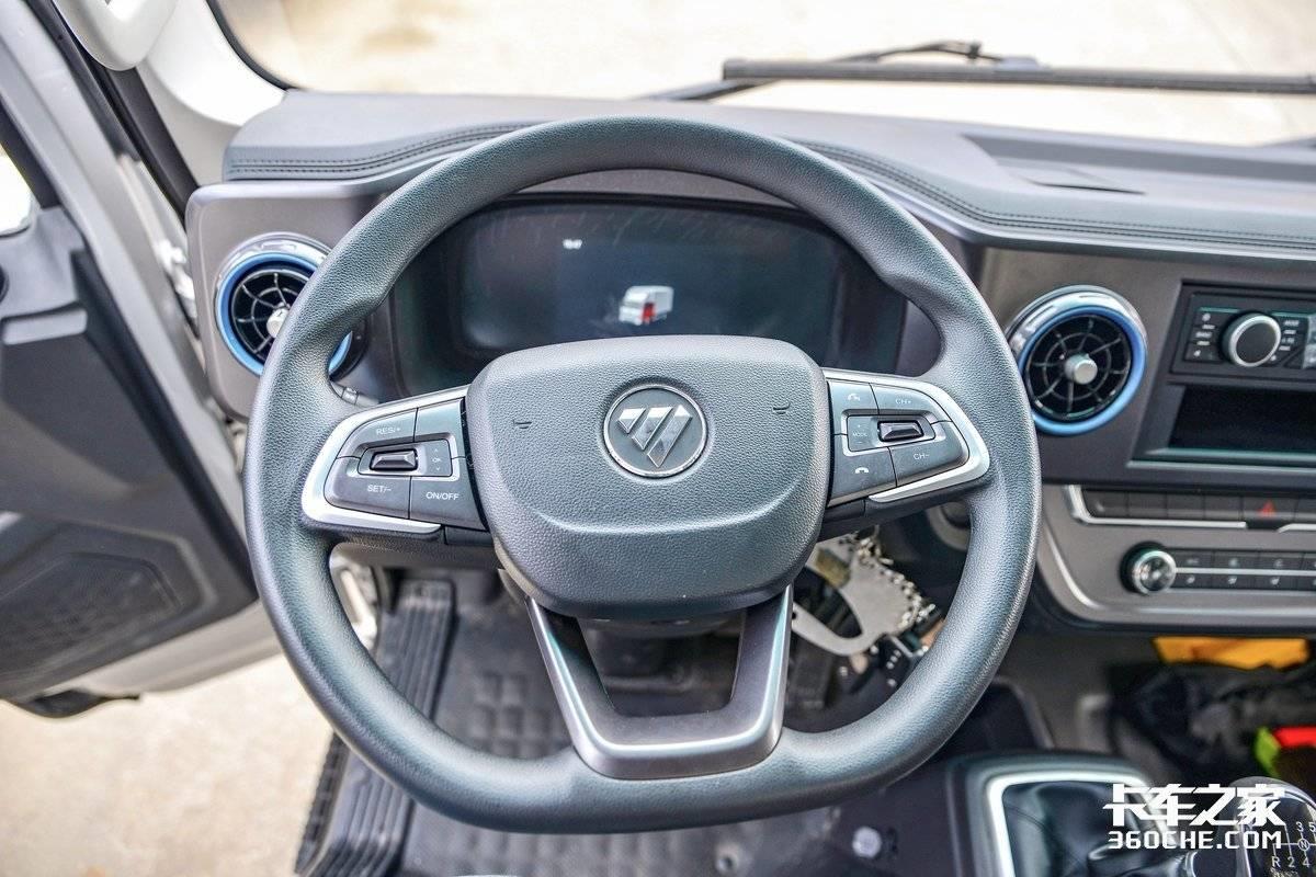 在舒适性上,这台欧马可S3配备有轻卡车型上少见的气囊减震座椅,能够有效提高日常驾乘舒适度。此外,该车还配备有多功能方向盘、电动后视镜调节、电动车窗、收音机、冷暖空调等配置。
