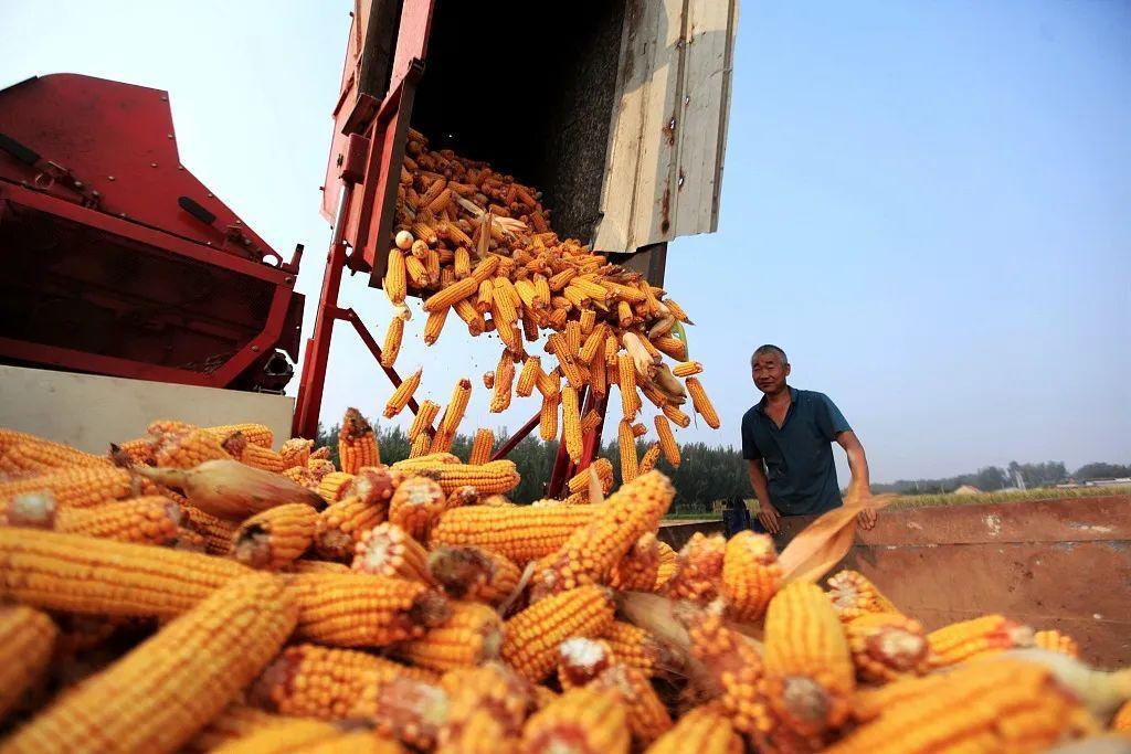 2022年9月12日,山东省临沂市,中秋迎丰收,平邑县农民抢抓农时收获玉米,确保粮食颗粒归仓,田间地头一派繁忙的丰收景象。/ CFP