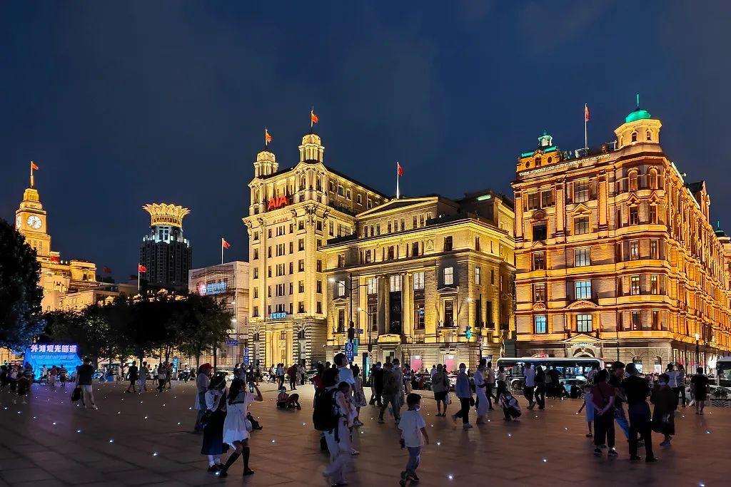 2022年9月11日,上海,中秋假期第二天,外滩亮起景观灯光,城市风景绚烂。/CFP