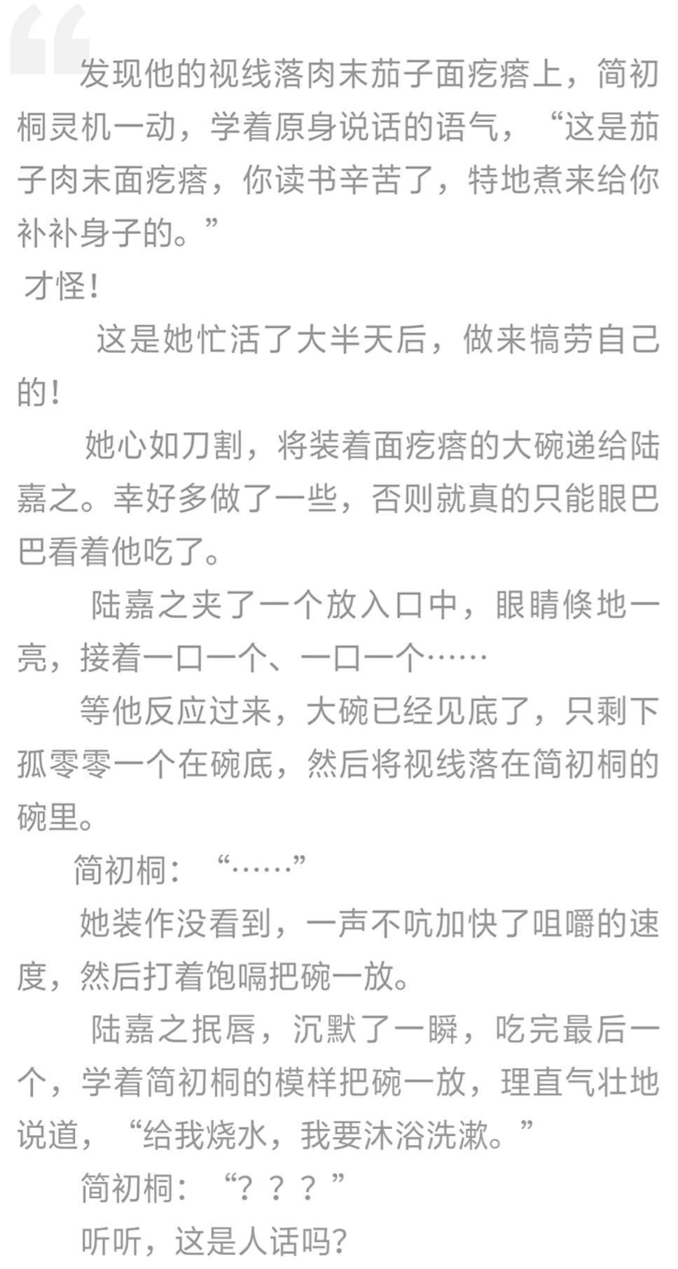 简初桐(原身)从小爹不疼娘不爱,睡猪圈,吃不饱穿不暖。陆嘉之曾被游方术士批命,福缘深厚易遭受反噬,破解之法便是找一个八字凶煞之人结为夫妻。就买了简初桐为童养媳。才过上吃饱穿暖的日子。陆父陆母因意外逝世,为报答养育之恩,简初桐(原身)扛起了供陆嘉之读书的责任,过度劳累去世……被来自现代的简初桐附身……