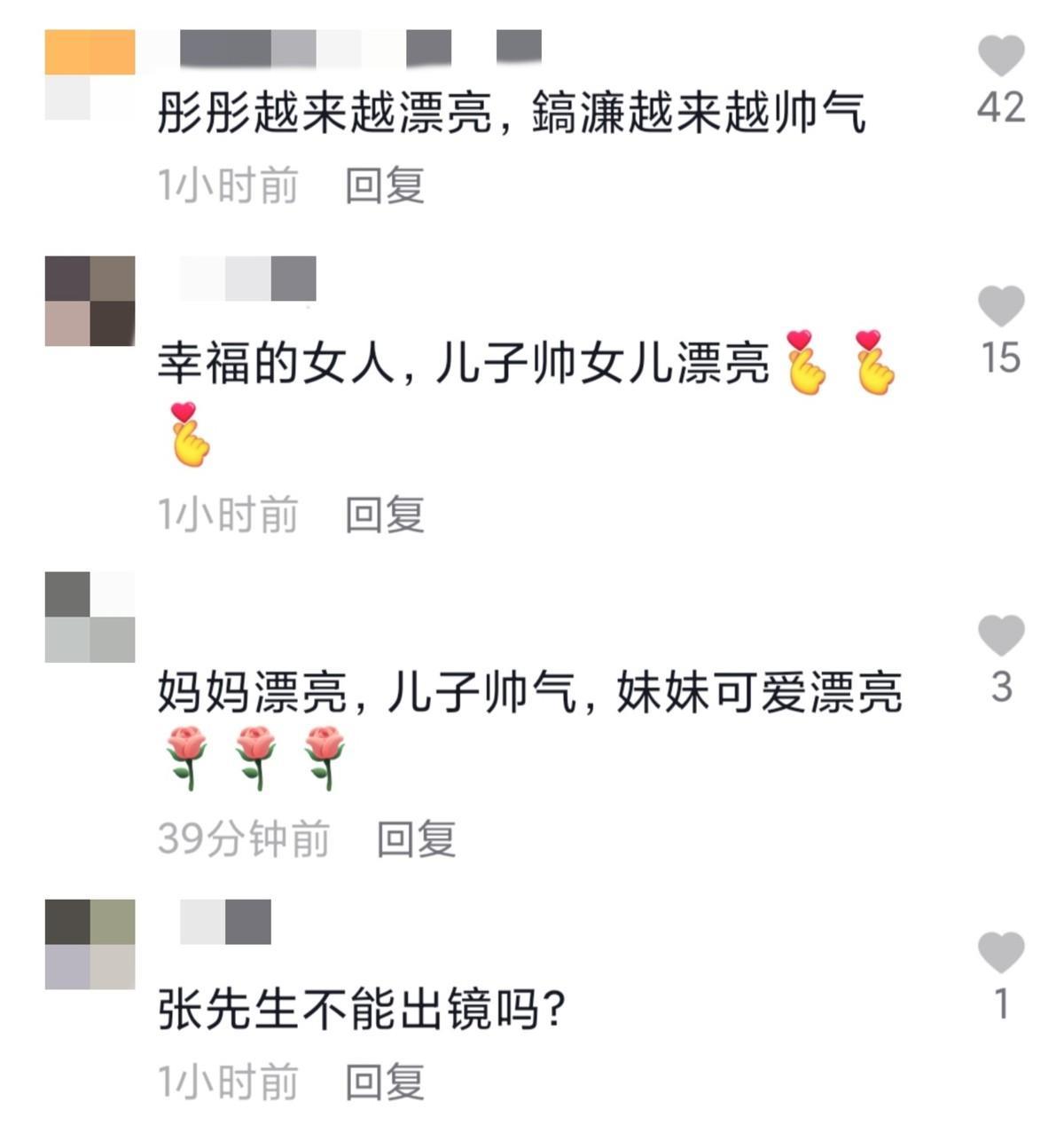 网友看了洪欣晒出的照片,纷纷留言夸奖女儿越来越漂亮,儿子也越来越帅气,直言洪欣是幸福的女人。也有网友发现张丹峰没有出镜,留言提出了疑问。