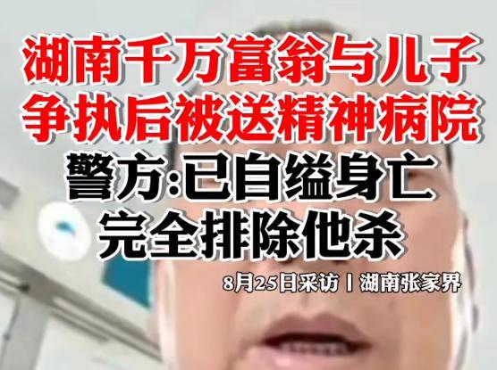湖南千万富翁已自杀,生前被儿子送精神病院,曾和儿子起激烈争执