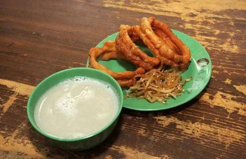 豆汁儿是老北京独具特色的传统小吃。豆汁是以绿豆为原料,将淀粉滤出制作粉条等食品后的剩余残渣进行发酵产生的。具有色泽灰绿,豆汁浓醇,味酸且微甜的特色。