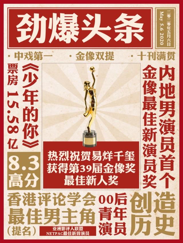 因为在不久前的金像奖评选中,易烊千玺所在电影《少年的你》,赢得了多重奖项。