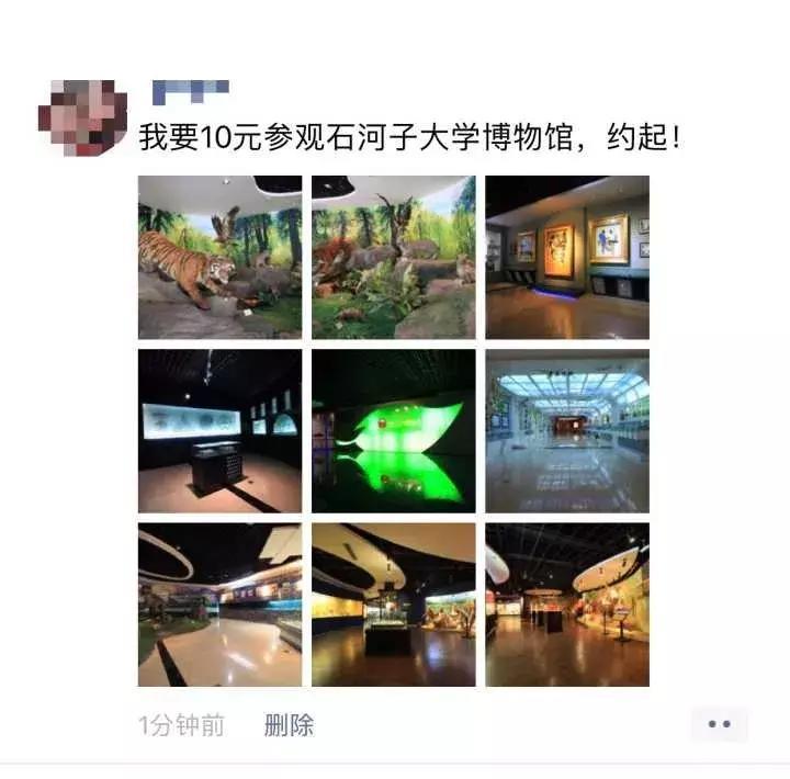 第二步: 指定文字(我要10元参观石河子大学博物馆,约起!)+九宫格图分享朋友圈。