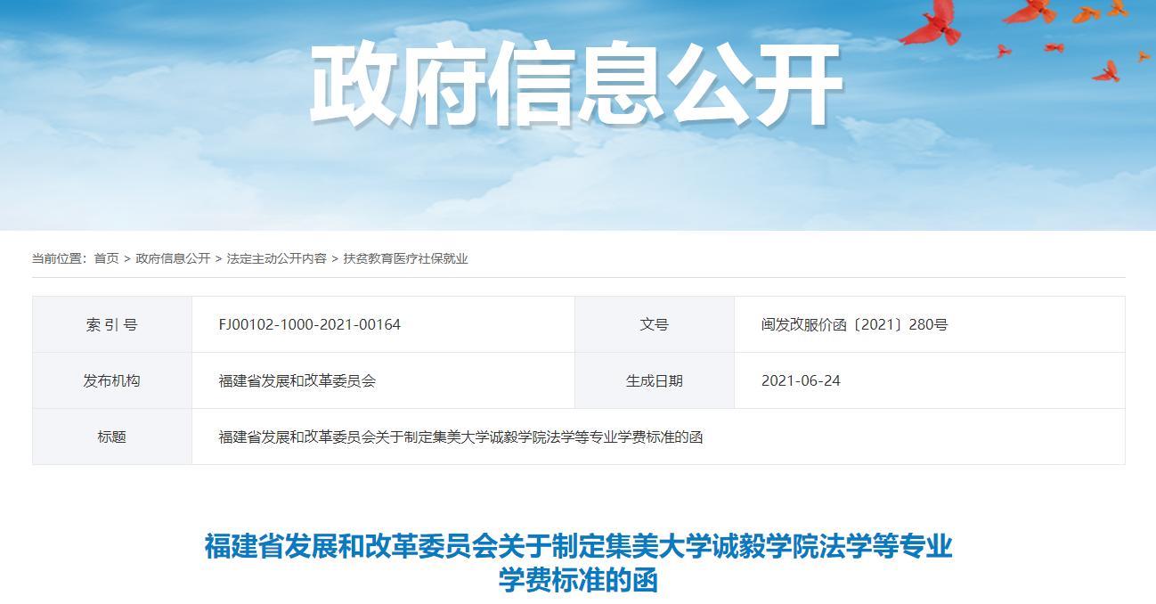 事关集美大学诚毅学院法学等专业学费标准调整