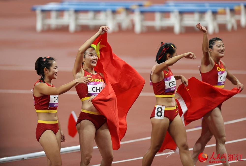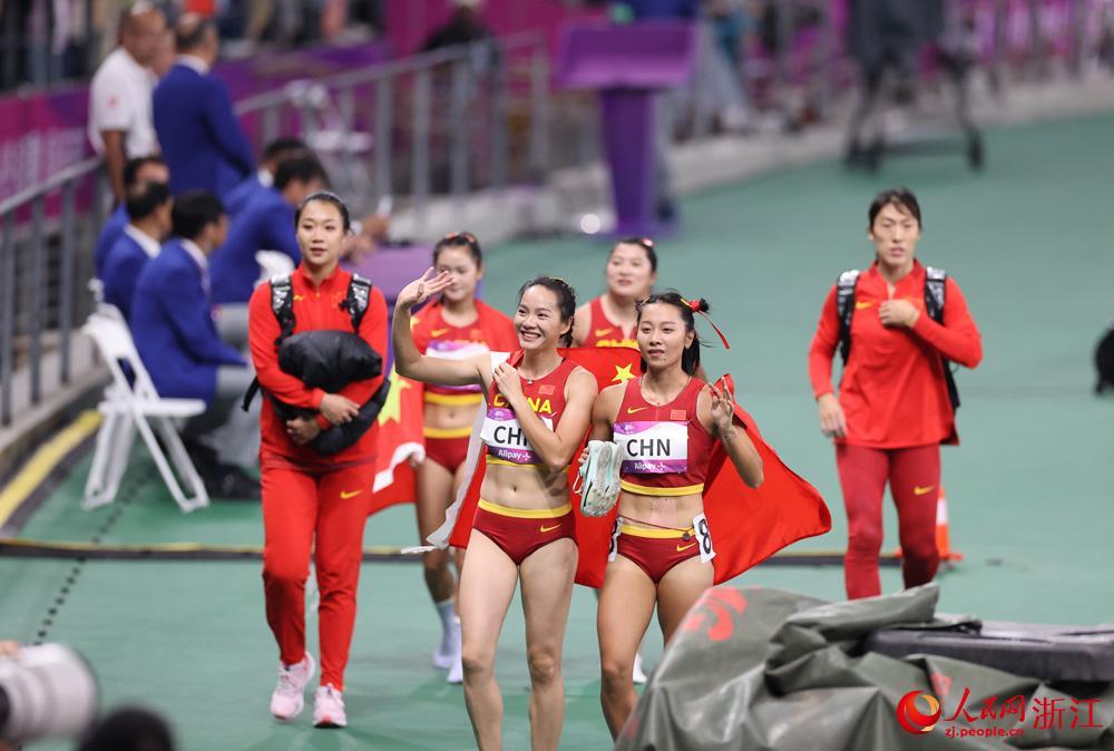人民网杭州10月3日电 (叶宾得)今晚,杭州亚运会田径4×100米接力决赛进行。由梁小静、韦永丽、袁琦琦和葛曼棋组成的中国队以43秒39的成绩夺得冠军,时隔9年重返亚洲之巅,这也是中国队第8次夺得该项目的亚运会金牌。