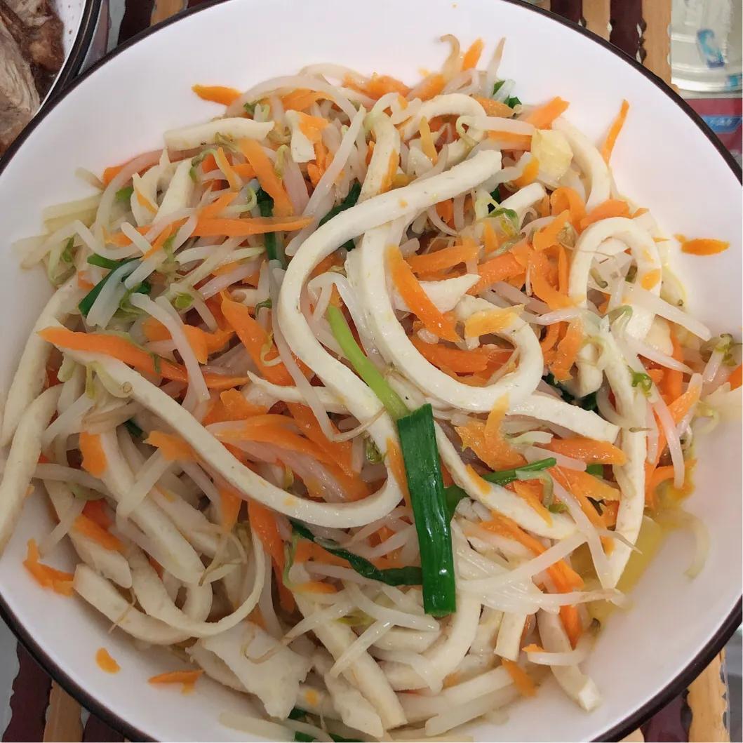 潮鱼米条10块,胡萝卜1块,豆芽2块,葱送的