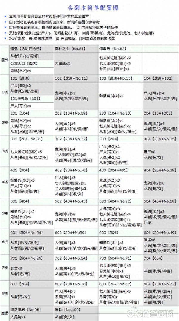 PS:上述过程中,玩家需自行根据副本所刷种类怪物更换加成礼装,怪物分布可参考下方信息。