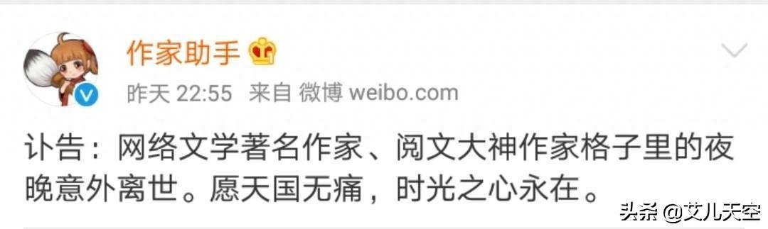 ★原起点白金大神格子里的夜晚因独居心脏病突发意外离世。网文作者身体话题又一次进入大众视野。