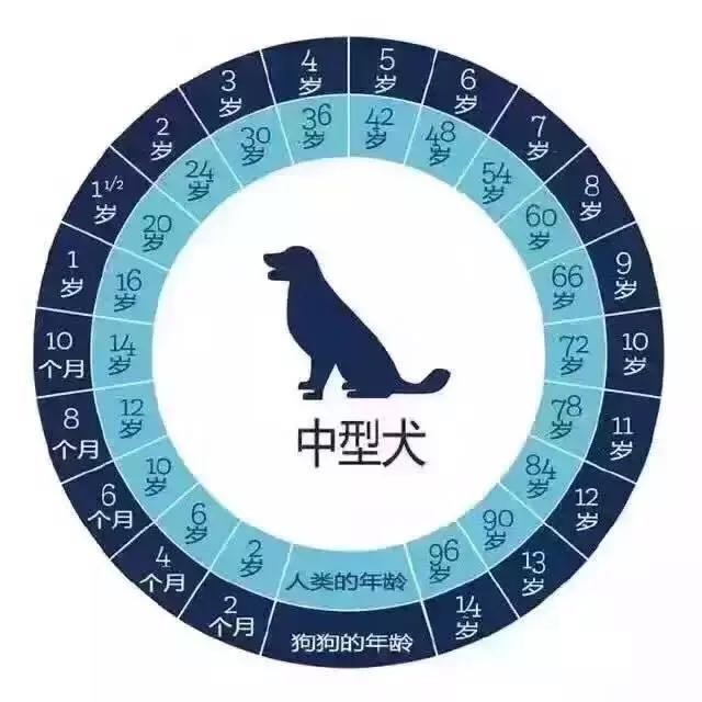 计算年龄按狗狗的犬种大小计算,小型犬、中型犬、大型犬各不同。下面大家可以对照下下面的表格哦!