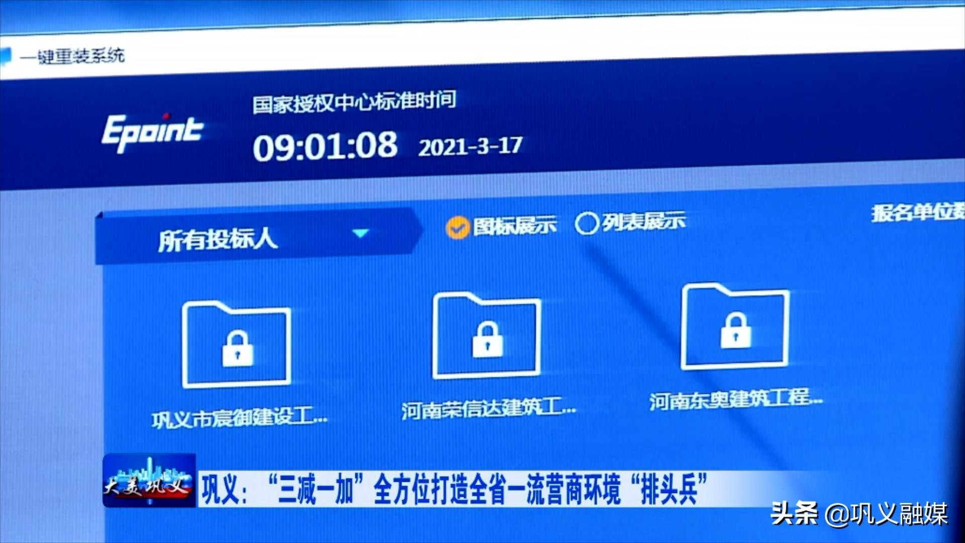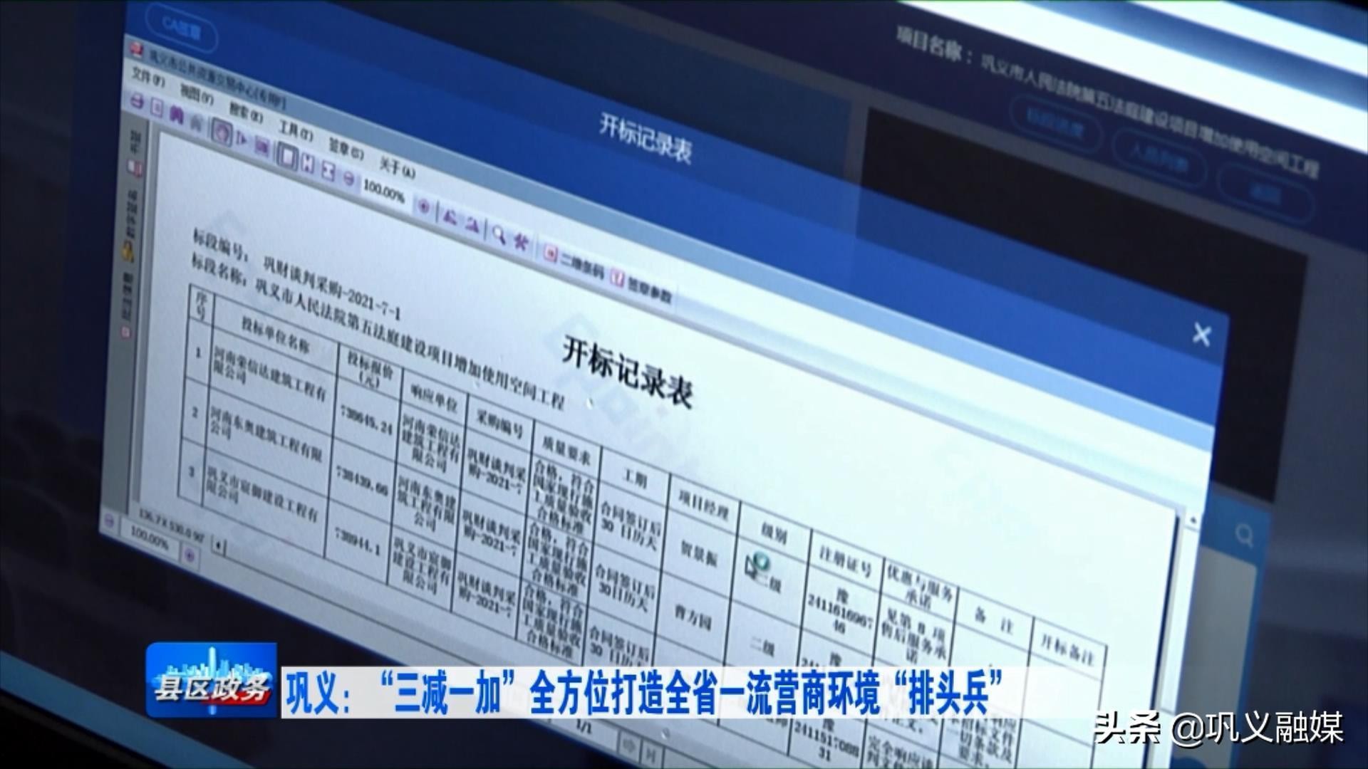 在巩义市公共资源交易中心的不见面开标室记者看到,随着招标代理人一声指令,巩义市某项目不见面开标即时启动,电脑系统自动公布投标人名单,各投标人线上自主解密投标文件……短短几分钟时间,整个开标过程便顺利完成。